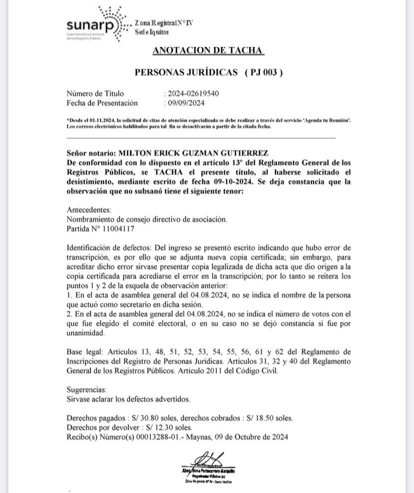 Ya no les queda otra opción a quienes quisieron seguir en el cargo de la directiva que hace tiempo debió entregar el cargo a quienes ha mandado el Tribunal respectivo. Sin embargo, quienes no quieren dejar los cargos, presentaron recurso ante un notario de Shilcayo.