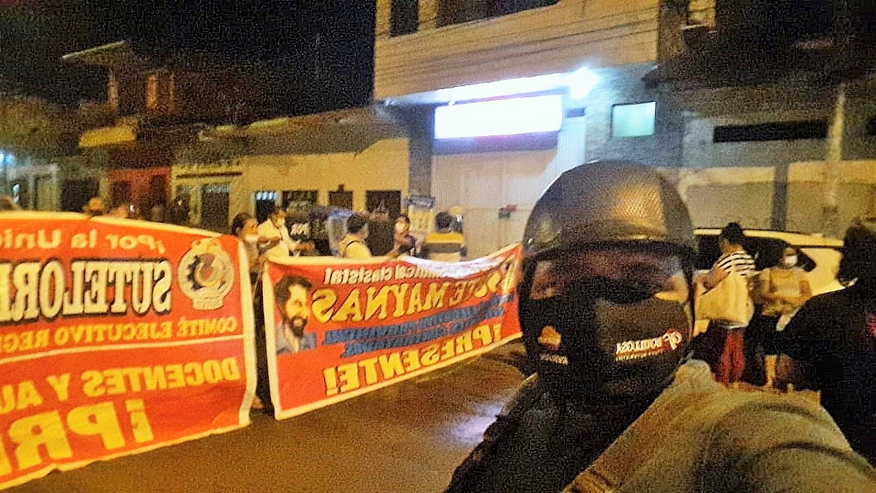 En su segunda jornada de protesta, los docentes y auxiliares afiliados a las bases regional y provincial del Sindicato Unitario de Trabajadores de Educación (SUTE) llevaron a cabo una protesta en exteriores de la casa del gobernador regional de Loreto, Elisbán Ochoa, con motivo de la demora en el pago de sus salarios correspondientes al mes de diciembre.