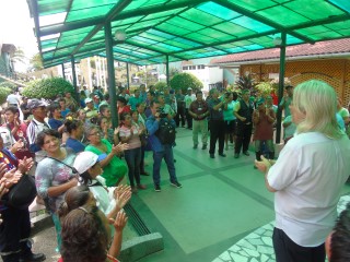 “Es un plantón de los trabajadores del sindicato de obreros y empleados, nos hemos unido para exigir a la alcaldesa, las autoridades, regidores y funcionarios, que aseguren la planilla del mes de diciembre, toda vez que nuestros pagos de gratificación, canasta de navidad, descuentos AFP, préstamos en bancos que son materia de descuentos, no están asegurados.