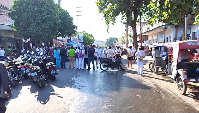 Los trabajadores administrativos y asistenciales del Hospital de Apoyo Iquitos César Garayar García, bloquearon la cuadra cuatro de la calle Libertad, durante la mañana, como parte de la acción de protesta acatado por el paro de 48 horas del sector salud convocado a nivel nacional.