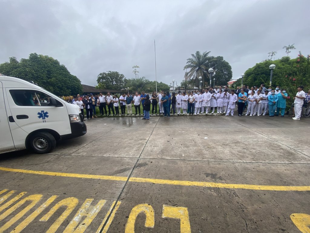 Las autoridades del hospital, entre ellos el director y jefes de algunos servicios, salieron y se pararon en el frontis del nosocomio. Posteriormente salieron los trabajadores de manera ordenada a ubicarse frente al establecimiento, en el jardín que lo rodea. No se utilizaron los ascensores, bueno los dos que están buenos porque hay uno que lleva semanas sin dar el servicio.