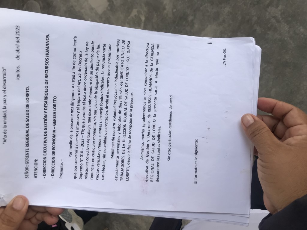 Entonces hoy se habla de dos sindicatos en la gerencia regional de Salud, por lo que varios de los trabajadores que no desean en absoluto que Da Silva, maneje sus cuotas sindicales, han enviado documento a la gerencia regional solicitando la desafiliación de ese “sindicato” y que no se hagan efectivas sus cuotas.