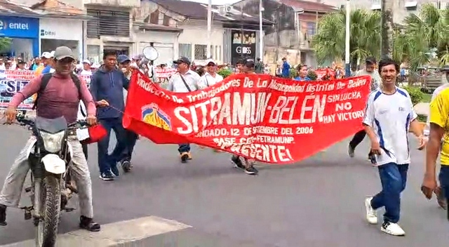 Trabajadores de diversas municipalidades de Loreto se congregaron en la plaza 28 de Julio de Iquitos como parte de una jornada nacional de protesta. La movilización tuvo como objetivo rechazar un proyecto de ley en el Congreso que, según denuncian, busca restringir el derecho a la negociación colectiva en el sector público.