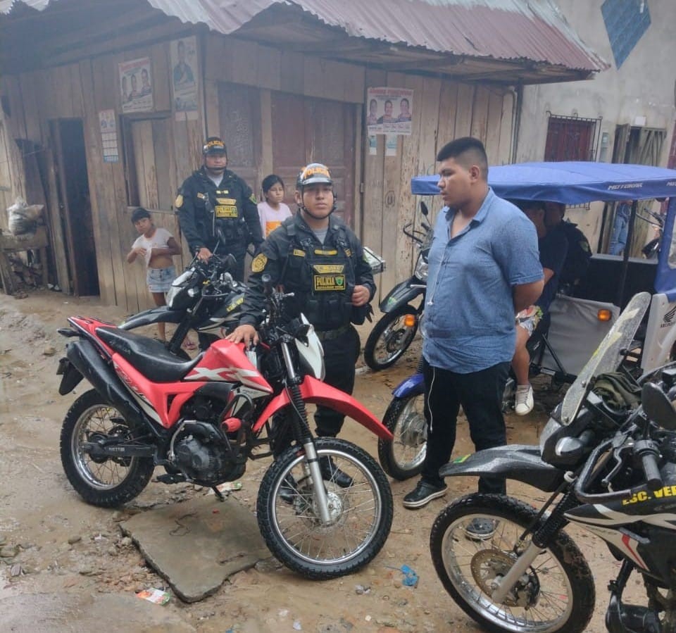 La persona de Hugo Anthony Trinidad Pacaya (20) fue intervenido por agentes PNP de la Unidad de Operaciones Especiales Escuadrón Verde y Grupo Terna Iquitos, inmerso en la presunta comisión del delito contra el patrimonio – robo agravado a mano armada en banda, al ser el presunto propietario de la motocicleta en la que minutos antes presuntos hampones intentaron perpetrar un hecho delictivo. Mientras que el menor de las iniciales E.E.M.P.(16), fue retenido por encontrarse inmerso en la presunta falta similar al delito contra el patrimonio, hecho ocurrido en la jurisdicción del distrito de Punchana.