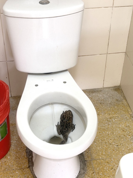 ¿Qué había pasado? Algo impresionante. Jamás pensando. Creemos. Un tremendo sapo estaba en la tasa del baño exclusivo para el personal de salud femenino del nosocomio. Nadie se explicaba si es que el animal había salido por el desagüe o había saltado a la tasa.