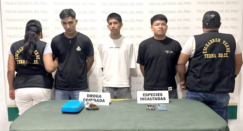 Los intervenidos fueron identificados como Bruno Sein Soto Venancino (19), alias “Popeye”; Fabio Bruno Echevarría Pinedo (21), alias “La Pepa”; y José Pacaya Ricopa (20), alias “Negro”.