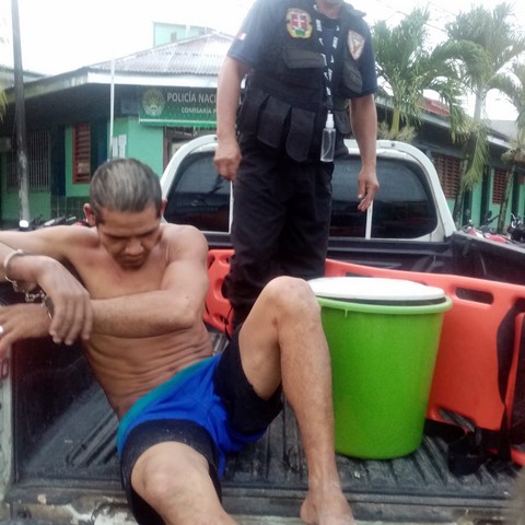 Los pobladores indicaron que sorprendieron a este sujeto, robando un balón de gas y un balde de color verde, en cuyo interior había un artículos de primera necesidad.