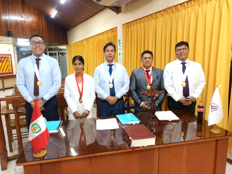 La sustentación de la tesis fue realizada ante un destacado jurado, compuesto por el Dr. Vladymir Villareal Balbin, presidente del jurado, el Mag. Cesar Augusto Millones Ángeles y el Mag. Miguel Ángel Villa Vega, quienes valoraron la calidad del trabajo presentado y la profundidad de los análisis realizados. La asesoría del Mag. Wilfredo Edgar Piélago Mariño fue clave en el proceso, brindando un acompañamiento cercano y profesional a los ahora nuevos licenciados en Derecho.