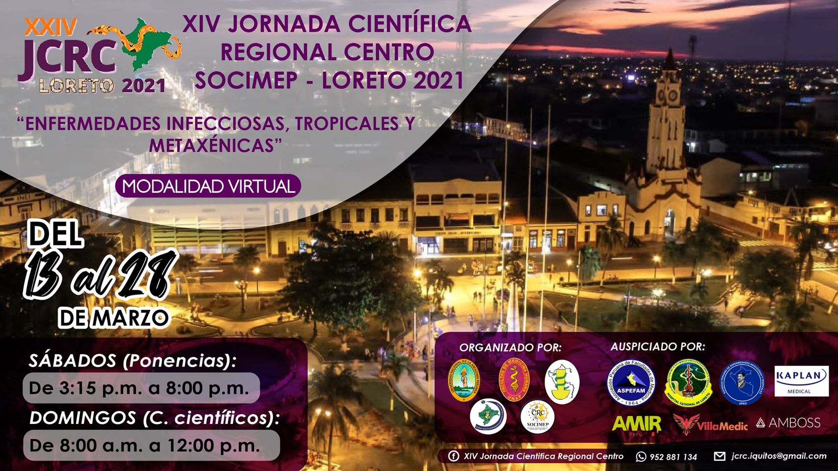 La XXIV Jornada Científica Regional Centro – Loreto 2021, promueve la investigación médica estudiantil e impulsa la participación de los estudiantes en las investigaciones sobre Recursos Humanos en Salud. Se desarrollan conferencias, pre congresos, ponencias magistrales, concursos científicos, etc. En esta oportunidad el tema central será: “Enfermedades infeccionas, tropicales y metaxénicas”.