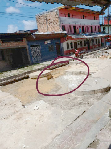 Según los pobladores hace un tiempo la pista se hundió. Llegó personal de municipio para qué solución este problema, sin embargo, dejaron abandonada la obra, haciendo que se formen aguas estancadas debido a la lluvia y por consiguiente un foco infeccioso de enfermedades. Desde hace mucho tiempo no hay pase por este lugar.