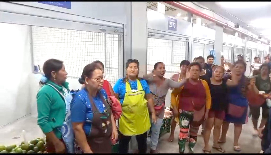 Un grupo de vendedores realizó una protesta en el interior del nuevo mercado 3 de Octubre, también conocido como mercado Modelo de Iquitos, para exigir a la Municipalidad Provincial de Maynas la entrega de un puesto de venta dentro de la moderna infraestructura.