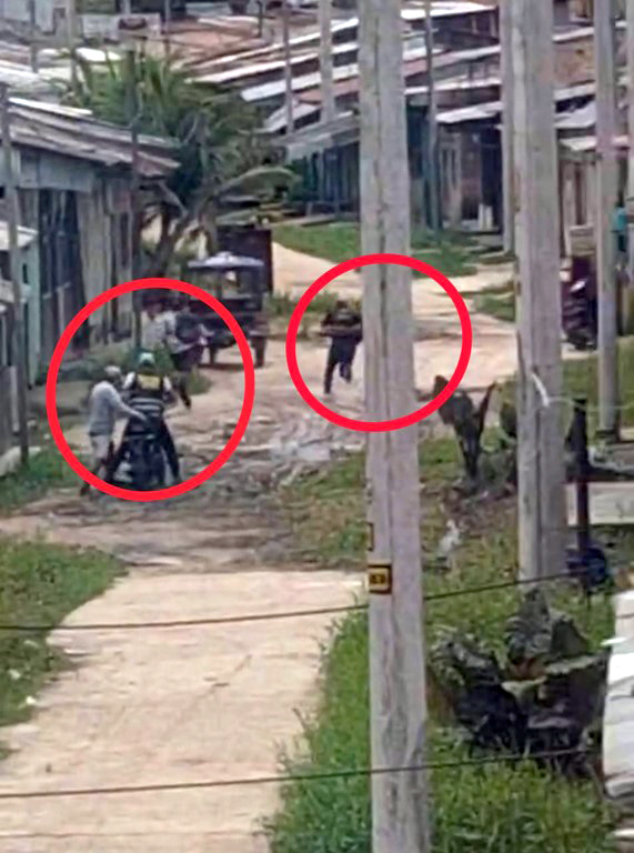 Al escuchar los gritos del padre, el hijo sacó la pistola y empezó a disparar a los delincuentes quiénes huyeron del lugar. Uno de ellos, al parecer, fue impactado con un proyectil de bala. Además, dejaron abandonadas las precintas con la cual iban a amarrar a sus víctimas y una mochila de color naranja.
