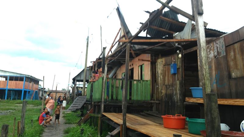 La tarde de ayer una torrencial lluvia acompañada de vientos fuertes de aproximadamente 70 km/h derribó techos y paredes de viviendas rústicas ubicadas en diferentes calles y asentamientos humanos del distrito de Punchana. Según defensa civil de este distrito serían por los menos 100 casas afectadas por este fenómeno climatológico