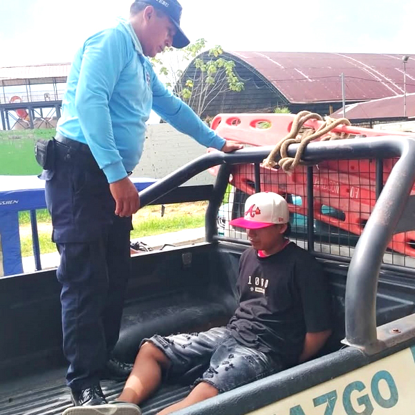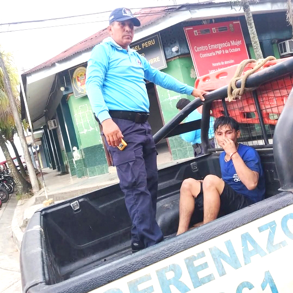 Un joven de 22 años fue intervenido por agentes del Serenazgo de San Juan Bautista, en coordinación con efectivos de la Policía Nacional del Perú, tras una violenta gresca protagonizada por presuntos barristas en la carretera hacia Santa Clara, en la ciudad de Iquitos.