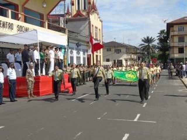 Llamó mucho la atención el ver desfilar a los miembros de la Logia Amazónica, por sus atuendos bastantes llamativos. Desfilaron por el 150 aniversario institucional.