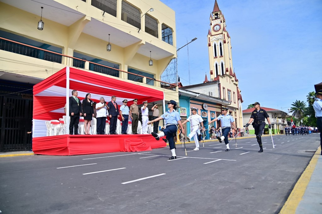 La ceremonia culminó con un vibrante desfile cívico y militar, en el que participaron destacadas instituciones de nuestra localidad, entre ellas el Colegio de Economistas, el Gobierno Regional de Loreto (GOREL), la Gerencia Regional de Salud (GERESA), el Centro Educativo República de Venezuela, el instituto American Computer, así como las fuerzas armadas, quienes desfilaron con gallardía en honor a nuestra nación y su legado.