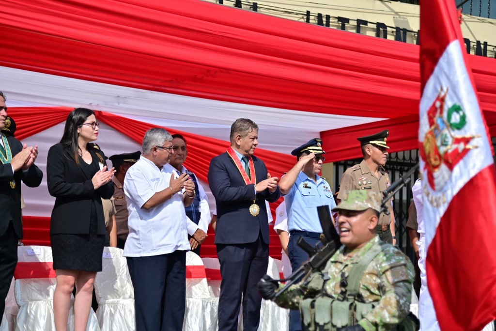 Este último domingo, el Alcalde Vladimir Chong Ríos, en compañía de diversas autoridades de nuestra región, tuvo el privilegio de participar en el solemne acto de izamiento del Pabellón Nacional y en el desfile cívico militar, llevados a cabo en la emblemática Plaza de Armas de nuestra ciudad.