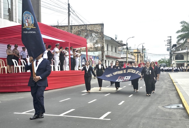 Ayer domingo, la Corte Superior de Justicia de Loreto, encabezada por el presidente Reynaldo Elías Cajamarca Porras, y con la participación de jueces y servidores judiciales, se hizo presente en la ceremonia plena y desfile cívico–militar, realizados en la Plaza de Armas de Iquitos, en el marco del Día del Juez y la Jueza, que se conmemora cada 4 de agosto.