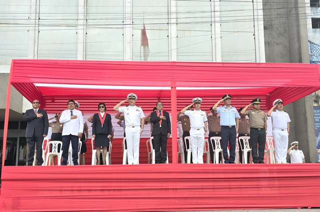 El evento contó con la distinguida presencia de la presidenta de la Junta de Fiscales Superiores de Loreto, Mery Lidia Aliaga Rezza; del gerente general de la Municipalidad Provincial de Maynas, Víctor López Orihuela; del director del Hospital Regional de Loreto, Dr. Jehoshua Rafael Michelangelo López López; así como de autoridades militares, representantes de instituciones públicas y de la sociedad civil organizada, cuyas delegaciones, que también desfilaron, engalanaron la ceremonia.